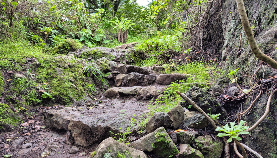 Los Tilos is especially valued for its concentration of endemic plant species, including remnants of laurel forest (laurisilva)—a prehistoric forest type that once covered much of southern Europe and today survives primarily in parts of Macaronesia. Rather than relying solely on rainfall, this forest captures moisture directly from low clouds and mist carried inland by trade winds, a process made visible as water clung to leaves and dripped steadily from its canopy.
