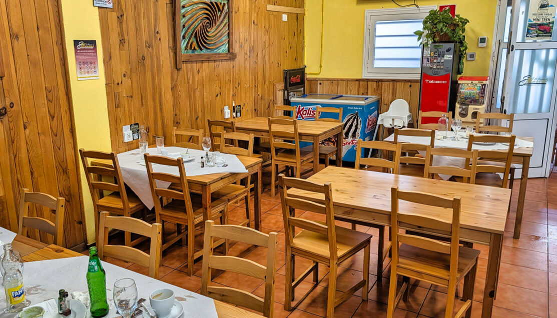 Simple wooden tables and a straightforward layout define the dining room at El Rincón de Marcos.