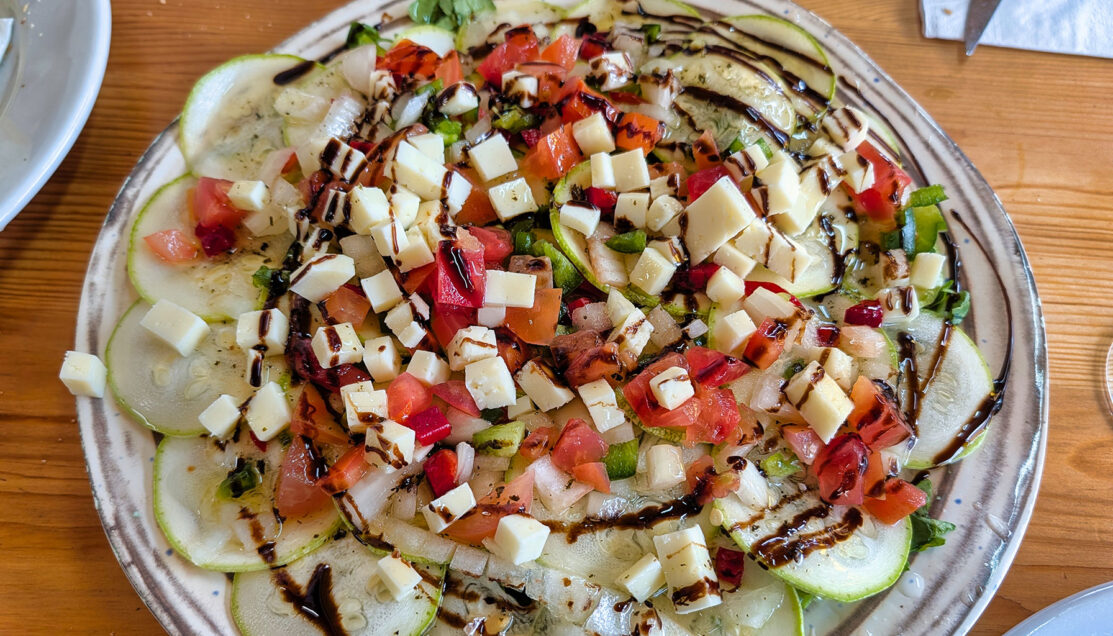 Fresh vegetables and local cheese reflect a cuisine shaped more by availability than presentation.