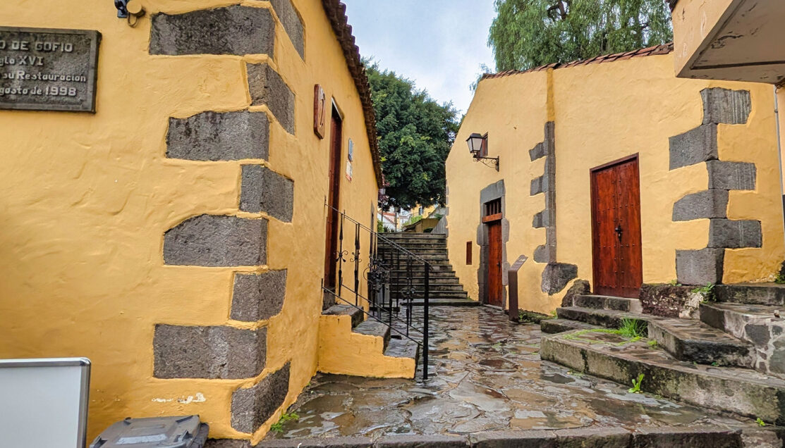 Once in Firgas, we continued on foot through the town center. Rain fell on and off throughout the visit, leaving the stone streets slick and requiring careful footing, but the town’s compact layout made it well suited to a brief walking exploration.